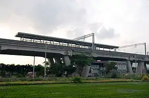 Tai'an (Chinese: 泰安車站; pinyin: Tài'ān Chēzhàn) is a railway station on the Taiwan Railways Administration Taichung line located in Houli District, Taichung, Taiwan.[1] The current elevated station is not the first Tai'an Station nor is located at its original site. Due to the re-routing of the West Coast line, the TRA closed the Tai'an Old Station on the Former Mountain line and keeps it as a tourist and historical facility while transferring the actual transportation service to the new station.