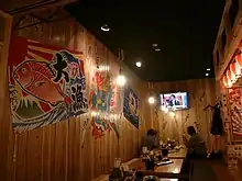 Tairyō-bata (大漁旗), also called tairyo-ki, are originally traditional Japanese fisherman's flags flown by boats to signify a large catch of fish in returning its port.[1][2] There are several local aliases, including Furai-ki (福来旗) in Sanriku Coast area.[3]