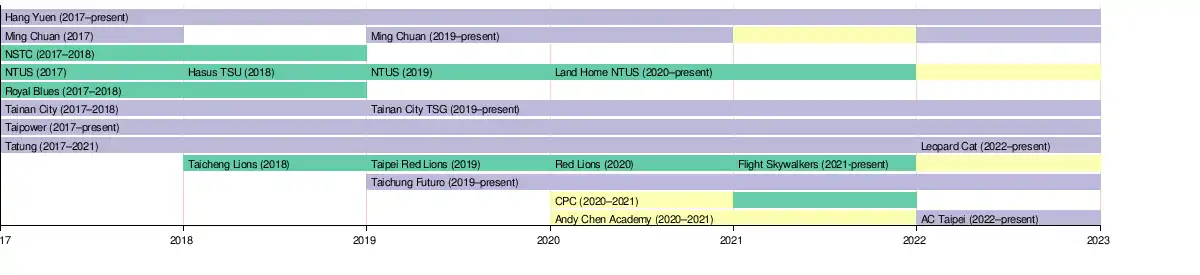 | 2021 | Tainan City TSG | Taipower | Taichung Futuro |