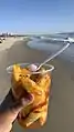 The company's most popular product is a seasoning powder, often referred to as simply Tajín, consisting of ground chili peppers, sea salt, and dehydrated lime juice. The powder is tangy and spicy, and has a color ranging from amber to carmine. It is often added to food, especially fruit, as a condiment.[4] Tajín is also used occasionally as an ingredient in micheladas, a beer cocktail. The seasoning is widely available in Mexico.