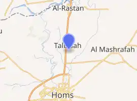 The Talbiseh bakery massacre (Arabic: مجزرة مخبز تلبيسة) took place in the town of Talbiseh on December 24, 2012, during the Syrian Civil War. More than 14 people were killed, and armed opposition activists claimed that was the result of bombing from warplanes from the Syrian government, while Syria's state news service blamed the attack on "an armed terrorist group", accusing them of filming the aftermath to "frame the Syrian army.".[1] The civilians in the city were killed while queuing for bread at a local bakery. This massacre occurred one day after the Halfaya massacre.[2]