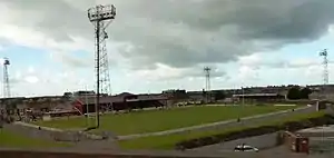 Originally called the Central Athletic Ground in the 1900s, the venue then owned by the Margam Estate played host to various sports including football, tennis, hockey, running, quoits and on one occasion a horse race. Aberavon RFC was granted exclusive use of the ground in 1913 - although it was sectioned off into allotments to help the war effort the following year.[2] Officially re-opened in December 1921, the renamed Talbot Athletic Ground became a barrage balloon site during the Second World War.[3] In March 1946, the ground attracted its record crowd, 19,000, for a match between Aberavon and a New Zealand Army team, "The Kiwis". The club became absolute owners of the ground in 1952, in a deal negotiated by Alderman Llewellyn Heycock, and various improvements and extensions were built in the 1950s, 1970s and 1980s.[4] Although exclusively a rugby union venue for most of its existence, the Talbot Athletic Ground also hosted some matches played by the final Welsh professional rugby league side of the 20th century, South Wales, in 1996.[5] The stadium has also hosted continental football matches. Afan Lido FC played the home leg of their Uefa Cup 1995/96, Preliminary Round, 1st leg tie against RAF Jelgava at the ground.