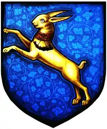 From Grant the estate of Tapeley descended by unknown means to the family of Coblegh of Brightley, Chittlehampton, Devon.[12] The Coblegh family of Brightley were the leading family resident within the manor and parish of Chittlehampton but were not lords of the manor of Chittlehampton. Two monumental brasses commemorating the Cobley family survive in St Hieritha's Church, Chittlehampton, one with an inscription to Henry Coblegh (died 1470) and his wife Alicia, parents of John Coblegh, whose brass lies adjacent to the north. John married twice, firstly to Isabella Cornu, secondly to Joan Pyne (possibly of the Pyne family of East Down[13]), as his brass records. His son by his second marriage was John Coblegh (died 1542) who married Joan (or Jane) Fortescue, a daughter of William Fortescue (died 1520), 2nd son of John Fortescue,[14] of Wimpstone, Modbury,[15] which John Fortescue was 1st cousin of Sir John Fortescue (c. 1394 – c. 1480), Lord Chief Justice of England and Wales. John Coblegh is recorded in the Lisle Letters as one of the Devonshire notables who were given a deer by Honor Plantagenet, Viscountess Lisle (died 1566) from the park of her nearby manor of Umberleigh. He also features further in the Letters.[16] There exists in Chittlehampton church a slab monument of John Coblegh (died 1542) and his wife Joan Fortescue. Their only child and sole heiress was Margaret Coblegh who married Sir Roger Giffard (died 1547), thus Brightley, together with other estates including Tapeley passed to the Giffard family.[17]