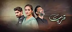 Tarap (Urdu: تڑپ, lit. 'Yearning') is a 2020 Pakistani drama television series, premiered on Hum TV on 29 March 2020.[1] It is produced by Babar Javed and MD Productions and directed by Nadeem Siddiqui. It features Syed Jibran Hiba Qadir in lead roles. The supporting cast include Baber Ali, Waseem Abbas, Nausheen Shah and Saleem Mairaj.[2] Tarap is a story of hardship, sacrifice, and love which shapes the characters and plot.[3][4] The drama initially aired every Sunday at 9:10pm, then in Ramadan aired every Saturday and Sunday night at 9:10PM, resuming back to one day normally.