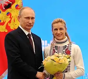 The head of the Ukrainian trainers' council admitted there were no partners for her in the country who could compete at a high level,[15] and on 14 May 2010, it was reported that Ukraine would not interfere with her decision to compete for Russia.[16] Russian coach Ludmila Velikova confirmed that Russia had attempted years earlier to persuade Volosozhar to skate under its colors, however, the Ukrainian skating federation believed she would be successful with Stanislav Morozov.[16]