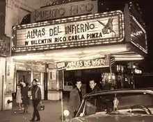 The Teatro Puerto Rico soon began to feature one or two Spanish-language films (primarily Mexican) a week with a featured star attraction, attracting patronage from non-Puerto Rican Latinos all over the Greater New York area. As a consequence, Carlos Montalban, the older brother of actor Ricardo Montalbán, who had connections in Hollywood was contracted to bring Mexican entertainers and cinema celebrities who were shown in the movies. Among those who were contracted for comedy skits or to talk about their lives and careers were Cesar Romero, Mario "Cantinflas" Moreno, Jorge Negrete and Pedro Infante.[4] Miguel Poventud often participated in comedy sketches with Mexican comedian Germán Valdés also known as "Tin Tan". Among the international singers and actresses who headlined at the teatro were Spain's Sara Montiel and Argentina's Libertad Lamarque. In 1949, Lamarque's gross profits of her show for one week came in third place after two Broadway Musicals, "Kiss Me, Kate" and "As the Girls Go".[4]
