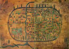 Other sources[17][18] claim that in AD 246, to avenge his brother's death, king Tiridates II of Armenia repelled Ardashir I of the Sassanid Empire and changed the name of the city from Shahistan to Tauris, deriving from "ta-vrezh" ("this revenge" in Grabar). In AD 297, it became the capital of Tiridates III, king of Armenia.[19] However, this story has a popular origin and no ancient source has recorded such event. This is based on accounts of Vardan Areveltsi, a 13th-century Armenian historian.[20] Accordingly, the historical Armenian name for the city was Tavrezh (Armenian: Թաւրէժ, romanized: T'avrēž).[21]