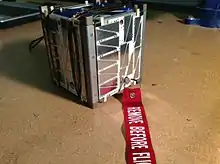 The first TechEdSat (later renamed "TechEdSat-1" or "TES-1")[2][3] was a 1U-Cubesat designed to evaluate Space Plug-and-play Avionics (SPA) designed in Sweden by ÅAC Microtec. It was also originally intended to perform a communications experiment utilizing the Iridium and Orbcomm satellite phone network,[4] although this function was disabled before launch.[5] TechEdSat was deployed into orbit from the International Space Station (ISS) on 4 October 2012. It reentered to atmosphere on 5 May 2013.[6]