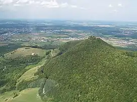 The Teckberg jumps from Swabian Jura edge from about 3 km towards the north front and overlooks the Albvorland to 350 m, the Lauter (Neckar) valley to 400 m. He is flanked of the approximately 602 m high foothills Hörnle and Hohenbol north and northwest. Both Foothills include smokestacks of the Swabian volcano. North below the Hörnle is the glider area Teck (between Dettingen unter Teck and Bissingen an der Teck). The slope of the Teckberg formed by the Yellow Rock, a Schwammriff the Jura sea of bright lime. Under the "Gelber Fels", is the 31 m long and 45 m high Veronikahöhle, which is connected through columns with Verena-Beutlins-Loch. East of the Gelber Fels (Yellow Rock) three grave mounds indicate from the Hallstatt period (800-400 BC) the early settlement of the Teckberg. Under the castle Teck is the 35 m long and 9 m high fabled Sibyllenloch, on the other side the 22 m long Sibyllenhöhle. It was only in 1937 discovered during construction work and was explored in 1977. During excavations in Sibyllenloch 1898/99 over 2,000 skeletal remains of cave bear, cave lion, cave hyena and wild horse were found. So many conclusions about the glacial fauna could be drawn.