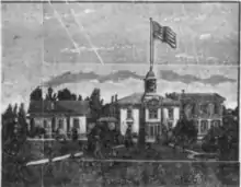 The first purpose-built county courthouse was completed in Red Bluff in 1860 and remodeled in 1880 with a bell tower above the entrance.[4] The design was credited to architect B.C. Nusbaum.[5] A Hall of Records was added to the north of the original courthouse building in 1882–83.[6] It was demolished in 1920 and a new courthouse was erected on the site.[4]