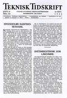 - "Teknisk tidskrift". WorldCat. Retrieved 8 November 2021.