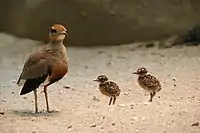 Temminck's courser (Cursorius temminckii) is a bird in the pratincole and courser family, Glareolidae. It is a wader which lives in sub-Saharan Africa. It is noted for laying its dark colored ash-black eggs in the burnt bushes and grass of the African savannah.[2][3][4]