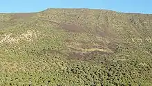 Outcrops of the Carmel Formation are most notably exposed on Horse Ranch Mountain[16] (photo) in the Kolob Canyons section of the park and near Mt. Carmel Junction east of the park.[3] Other formations totaling 2,800 feet (850 m) thick may have been deposited in the region during Late Jurassic and Early Cretaceous only to be uplifted and entirely removed by erosion.