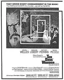 Ten Days' Wonder (French: La Décade prodigieuse) is a 1971 French murder-mystery film directed by Claude Chabrol and starring Michel Piccoli, Anthony Perkins, and Orson Welles. It is based on the novel Ten Days' Wonder by Ellery Queen.