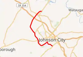 State Route 381 (SR 381) is a state highway in Johnson City, Washington County, Tennessee. It serves as a bypass of Downtown on the north, west and south sides of the city. The route is also a retail corridor, lined with stores, restaurants and hotels.[1]