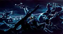 Terminator Salvation is the fourth installment of the Terminator film series, and was made by The Halcyon Company and distributed by Warner Bros. Pictures and Columbia Pictures. It was released on May 21, 2009 to mixed reviews and grossed $371.4 million. It was written by John Brancato and Michael Ferris, directed by McG,[25] and stars Christian Bale as John Connor and Sam Worthington (who was personally recommended by James Cameron[26]) as Marcus Wright.[27] Following the events of Terminator 3: Rise of the Machines, after Skynet has destroyed much of humanity in a nuclear holocaust, John struggles to become the leader of humanity to which he is destined, while Marcus Wright finds his place in an unfamiliar post-apocalyptic world. In this future, altered by the events of the second film, the T-800 Terminators (Roland Kickinger with CG-rendered facial likeness of Arnold Schwarzenegger[28]) are coming online sooner than expected. The film also stars Anton Yelchin as Kyle Reese,[29] Bryce Dallas Howard, Moon Bloodgood, Common, Michael Ironside and Helena Bonham Carter.