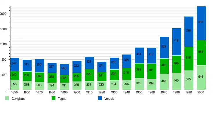 During the Middle Ages the population grew crops in the valley around the village. Beginning in the 16th century they began a seasonal migration for work in the Livorno area. The thin soil and limited farming land kept the village small and the population poor. In the 19th century many residents emigrated to other countries and the population dropped in Verscio. Beginning in the 1920s work in the watch industry provided about 60 jobs for residents. This remained an important part of the local economy until the 1970s when cheaper import watches damaged the Swiss watch industry. During the 1960s the city of Locarno began to expand and Verscio became a commuter town for the growing city. Today almost three-quarters of the working population commutes to jobs in Locarno.[6]