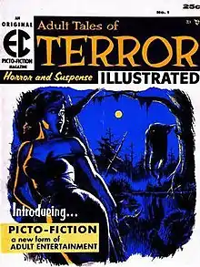 Terror Illustrated was a black-and-white magazine published by EC Comics in late 1955 and early 1956. Part of EC's Picto-Fiction line, each magazine featured three to five stories.[1] The format alternated blocks of text with several illustrations per page.