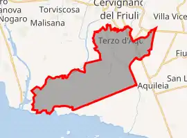 Terzo d'Aquileia (officially Terzo di Aquileia;[3] Friulian: Tierç, locally Tiars; Bisiacco: Ters) is a comune (municipality) in the Province of Udine in the Italian region Friuli-Venezia Giulia, located about 40 kilometres (25 mi) northwest of Trieste and about 30 kilometres (19 mi) south of Udine.
