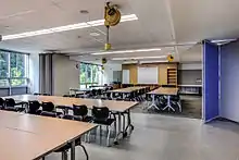 Modular building techniques were used to construct the school due to permitting and time restrictions. The majority of the building was fabricated offsite, with 4 sections (including the common area) built on site.[7]