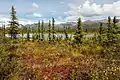 Tetlin National Wildlife Refuge is a dynamic landscape made up of forests, wetlands, tundra, lakes, mountains and glacial rivers bounded by the snowy peaks of the Alaska Range. This upper Tanana River valley has been called the "Tetlin Passage," because it serves as a major migratory route for birds traveling to and from Canada, the lower 48 and both Central and South America. Many of these birds breed and nest on the refuge. Others pass through on their way to breeding and nesting grounds elsewhere in the state. Migrants, including ducks, geese, swans, cranes, raptors and songbirds, begin arriving in the valley in April, and continue into early June. An estimated 116 species breed on Tetlin during the short summer, when long days and warm temperatures accelerate the growth of plants, insects and other invertebrates, providing a ready source of rich foods for nesting birds.