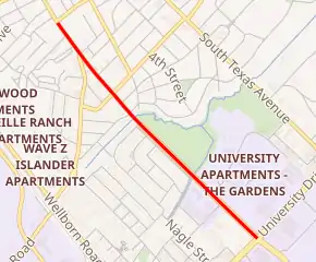 State Highway 308 (SH 308) or College Avenue, runs from FM 60 (University Drive) in College Station north to Sulphur Springs Road in Bryan. It is one route from the Texas A&M University campus to the university's Hensel Park, a recreation facility for faculty, staff, and students of the university.