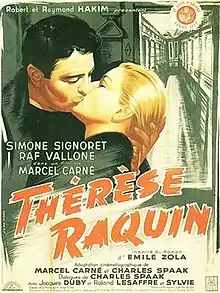 Thérèse Raquin (also The Adultress) is a 1953 French-Italian drama film directed by Marcel Carné and starring Simone Signoret and Raf Vallone. The story is loosely based on the 1867 novel of the same title by Émile Zola but updated to 1953. It was screened at the 14th Venice International Film Festival where it won the Silver Lion.