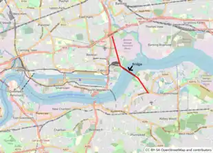 In July 2004, a new bridge on the site was proposed, with planning applications submitted by Transport for London to the London Borough of Newham and London Borough of Greenwich, with the support of Ken Livingstone, the Mayor of London.[2] and were approved in December 2004.[3] There was support from the other local councils including Barking & Dagenham, Havering and Lewisham, some local Members of Parliament, and business organisations such as London First and the London Development Agency.