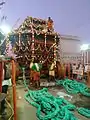 After construction of the chariot with the setting up of sculptures in it, the trial run chariot festival was held on 20 April 2015.[9][12][3] Before the trial run at 6.30 a.m. special pujas were done to the throne where the processional deity was to be kept.[13] More number of devotees pulled the chariot.[14] [15]