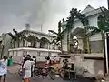 On the previous day of the festival, on 28 April 2015, from the Nataraja shrine of the Big Temple procession took place to the accompaniment of melas and nadasvarams. On the festival day, on 29 April 2015 [10] the chariot started.[16] At 5.15 a.m. Panchamurtis, the five processional deities such as Vinayaka, Subramania, Thyagaraja with consort, Devi and Chandikesvarar came from the temple premises through Sivagangai Park and reached where the chariot was kept. At 6.15 a.m. all the deities were kept in their respective places. After the conduct of special pujas, thousands of devotees pulled the chaript. Followed by caparisoned elephant the chariots moved. To the front of the main chariot of the presiding deity Thyagaraja and Kamalambal, the small chariots of Vinayaka and Subramania went. Amman chariot and Chandikesvara chariot followed the main chariot. Folk dancers of Thappattam, Kolattam, Mayil Attam and Silambattam and Oduvars singing Devaram accompanied the chariot. In many places the chariots were stopped for the easier view and worship of the devotees and conduct of pujas and cracking of cocoanuts.[17] [18][19] Every year this festival is being held.