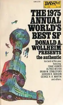 The 1975 Annual World's Best SF is an anthology of science fiction short stories edited by Donald A. Wollheim and Arthur W. Saha, the fourth volume in a series of nineteen. It was first published in paperback by DAW Books in May 1975, followed by a hardcover edition issued in September of the same year by the same publisher as a selection of the Science Fiction Book Club. For the hardcover edition the original cover art of Jack Gaughan was replaced by a new cover painting by Richard V. Corben. The paperback edition was reissued by DAW in December 1980 under the variant title Wollheim's World's Best SF: Series Four, this time with cover art by Vicente Segrelles. A British hardcover edition was published by The Elmfield Press in November 1976 under the variant title The World's Best SF Short Stories No. 2.