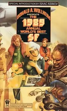 The 1989 Annual World's Best SF is an anthology of science fiction short stories edited by Donald A. Wollheim and Arthur W. Saha, the eighteenth volume in a series of nineteen. It was first published in paperback by DAW Books in June 1989, followed by a hardcover edition issued in September of the same year by the same publisher as a selection of the Science Fiction Book Club. For the hardcover edition the original cover art by Jim Burns was replaced by a new cover painting by Richard M. Powers.