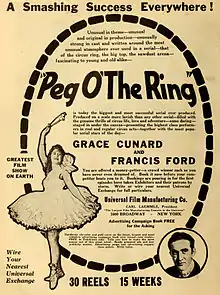 The Adventures of Peg o' the Ring is a 1916 American drama film serial directed by Francis Ford and Jacques Jaccard. It is now considered to be lost.[1]
