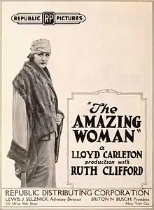 The Amazing Woman is a 1920 American silent drama film directed by John G. Adolfi and starring Ed Coxen and Ruth Clifford. It was released by the Republic Distributing Company.[1]