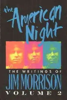The American Night[1] is a volume of poetry written by Jim Morrison, front-man for the 1960s psychedelic rock group the Doors, and published posthumously in 1991, 20 years after his death (to the month) by Random House under the trade name imprint Villard Publishing. The book is structured into 10 sections. The title is eponymous with a poem that appears on the album An American Prayer, itself a collection of spoken word and musical vignettes released in 1978.