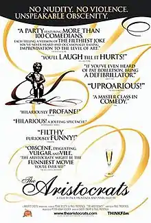 The Aristocrats is a 2005 American documentary comedy film about the famous eponymous dirty joke. The film was conceived and produced by comedians Penn Jillette, Paul Provenza and Peter Adam Golden, and edited by Emery Emery. Distributed by THINKFilm, it is dedicated to Johnny Carson, as "The Aristocrats" was said to be his favorite joke.[3]