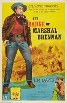 The Badge of Marshal Brennan is a 1957 American Western film directed by Albert C. Gannaway and written by Tom Hubbard. The film stars Jim Davis, Arleen Whelan, Carl Smith, Harry Lauter, Marty Robbins, Douglas Fowley, Lee Van Cleef and Louis Jean Heydt. The film was released on April 14, 1957, by Allied Artists Pictures.[1][2][3]