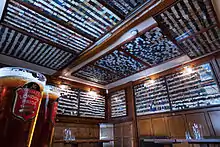 A distinctive feature of the Bear is a collection of over 4,500 snippets of club ties, started in 1952 by the landlord, Alan Course,[2] who had worked as cartoonist at the Oxford Mail.[22][23] Tie ends were clipped with a pair of scissors in exchange for half a pint of beer. These were originally pinned to the wall and are now displayed in glass-fronted cases on the walls and even the (low) ceiling. The ties mostly indicate membership of clubs, sports teams, schools and colleges, etc.[24][25]