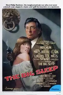 The Big Sleep is a 1978 neo-noir film, the second film version of Raymond Chandler's 1939 novel of the same name. The picture was directed by Michael Winner and stars Robert Mitchum in his second film portrayal of the detective Philip Marlowe (following Farewell, My Lovely three years earlier). The cast includes Sarah Miles, Candy Clark, Joan Collins, and Oliver Reed, also featuring James Stewart as General Sternwood.[2]