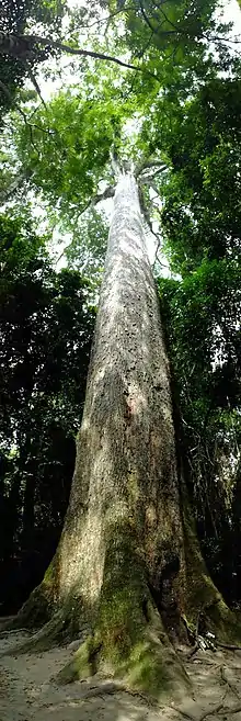According to Ghana’s Forestry officials, the big tree near the town of Akim Oda which is 66.5 m (218 ft) tall and 396 cm (13 ft) in diameter is believed to be the biggest tree ever discovered in Ghana and West Africa. It is a member of the species Tieghemella heckelii.[1] It is located in the Esen Apam Forest Reserve, about 22 kilometers from Akim Oda, about 300 m (1,000 ft) off the Oda-Agona Swedru trunk road.[2]