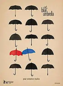The Blue Umbrella is a 2013 American computer-animated short film produced by Pixar Animation Studios that was released alongside Monsters University.[4] The short is directed by Saschka Unseld of Pixar's technical department. The short features techniques such as photorealistic lighting, shading, and compositing.[5]