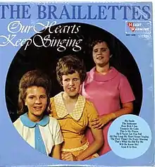 The Braillettes were a vocal group from Alameda, California, United States. The group consisted of three women (Maggie Liebnitz, Jackie Overalls, and Kay Smith), two of whom (Overalls and Smith) were blind. They released one album, titled Our Hearts Keep Singing, in 1968. The album is now out of print.