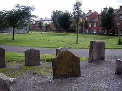 The burial ground was closed in 1878 to all but 14 families. The last interment took place in 1896 and the cemetery closed early in the 20th century.[5] Towards the end of the century part of the ground was converted into a public park while the rest was covered by public housing constructed by Dublin Corporation at the junction of Cathedral Lane and Upper Kevin St., which opened in 1982. The park can be reached by way of Cathedral Lane (until 1792 called Cabbage Garden Lane).[6]