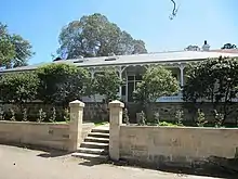 A sandstone outbuilding is situated in the gardens with timber joinery and a hipped corrugated iron roof.[1][4]