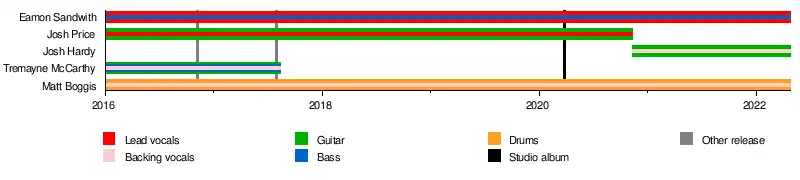 - Eamon Sandwith – lead vocals, bass guitar (2016–present)