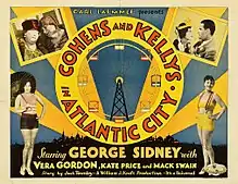 The Cohens and the Kellys in Atlantic City is a 1929 American silent comedy film directed by William James Craft and starring George Sidney, Vera Gordon and Mack Swain. It is the third entry in the series which began with The Cohens and Kellys, inspired by a play by Aaron Hoffman.[1] Location shooting took place in Atlantic City. Originally shot entirely as a silent, some sound sequences were later added at Universal Studios.[2]