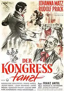 The Congress Dances (German: Der Kongreß tanzt) is a 1955 Austrian historical musical film directed by Franz Antel and starring Johanna Matz, Rudolf Prack and Hannelore Bollmann.[1] It is a remake of the 1930 film The Congress Dances, about a romance that takes place during the Congress of Vienna in 1814.