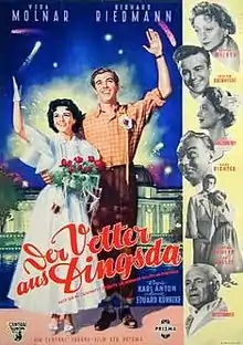 The Cousin from Nowhere (German: Der Vetter aus Dingsda) is a 1953 West German operetta film directed by Karl Anton and starring Vera Molnar, Gerhard Riedmann and Grethe Weiser. It is based on the 1921 operetta The Cousin from Nowhere composed by Eduard Künneke.[1]