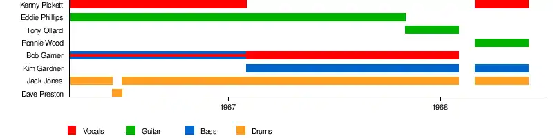 - Kenny Pickett (born Kenneth George Pickett, 3 September 1940, Ware, Hertfordshire; died 10 January 1997)[7] – lead vocals (1966–1967, 1968, mid-1980s–1997)