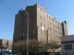 The Dartmouth is a historic apartment building in Indianapolis, Indiana. It was built in 1890 and is a large six-story, nine-bay-by-twelve-bay building faced in two shades of center-scored, salt-glazed brown brick. It features two three-sided projecting bays, limestone accents, and a crenelated parapet.[2]: Part 3, p. 5–6